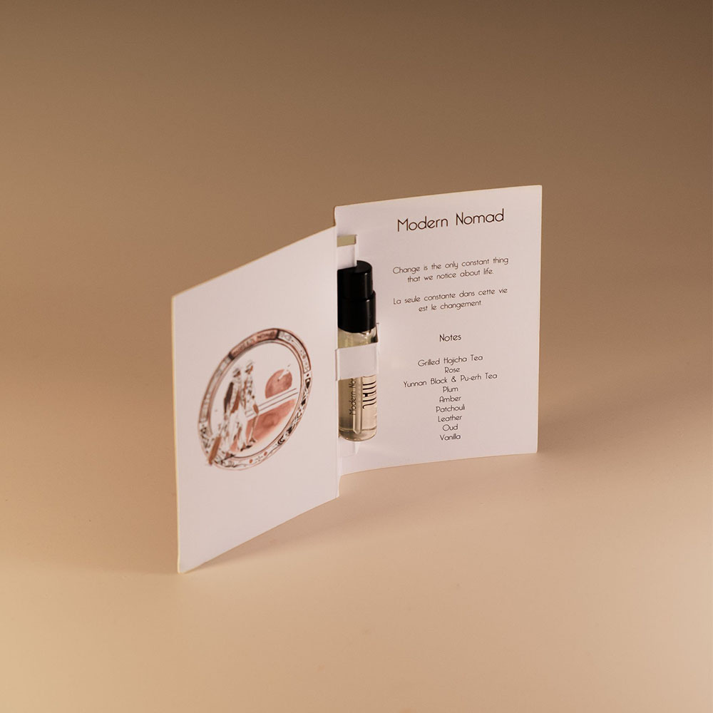 MODERN NOMAD is a French oriental amber fragrance. It is the olfactory expression of the explorer nomadic state of mind. The fragrance is very reminiscent of the oriental atmosphere of Death on the Nile. The fragrance’s top notes are a blend of East Asian teas Hojicha, Lapsang Souchong and Pu-erh. The floral and fruity notes of Turkish Rose and Plum are followed by the deep, woody aromas of Amber and Patchouli. The base notes of Leather and Oud bring a mysterious animalic aspect, softened by Madagascar Vanilla.