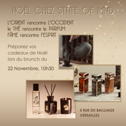 STATE OF MIND vous invite à réserver votre place pour une Cérémonie de Parfum et de Thé avec le Brunch, lors de laquelle la fondatrice de la Maison, Catherine Laskine, présentera la fabuleuse rencontre de l’ORIENT et de l’OCCIDENT célébrée par la Maison de Thé et de Parfums STATE OF MIND.